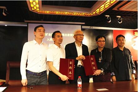 尊宝世界秦年锡董事长(右一)坦言与鼎越矿业集团的联手将是尊宝世界发展中里程碑似的合作,他希望在彼此的努力下,整合全国文化艺术品资源,通过尊宝互联网平台辐射海内外,从而将尊宝世界P2P平台、网上商城推向更大、更广的舞台。