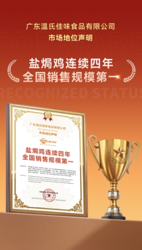 温氏佳味盐焗鸡连续四年全国销量第一,千年客家非遗技艺与现代预制菜融合,成就15亿市场的品类王者。前瞻产业研究院权威认证,用数据为品牌实力加冕。