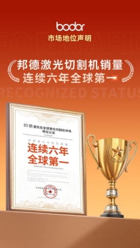 前瞻产业研究院为邦德激光在激光切割机的细分市场中以具体、真实的数据维度,论证了其全球行业地位,并为其出具市场地位证书。